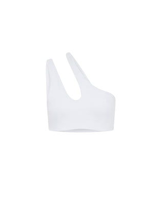 White Teardrop Cut Out One Shoulder Bikini Top
